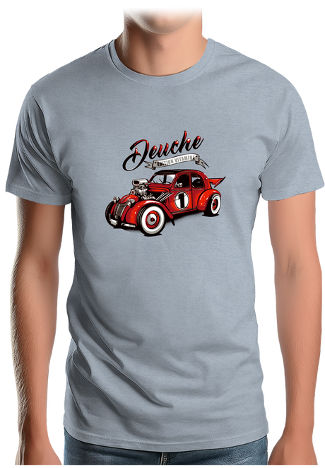 La deuche, ce n’est pas qu’une voiture. C’est une philosophie. Une manière de prendre son temps, de préférer le charme au clinquant. Nos t-shirts reprennent cet esprit avec des visuels décalés, des slogans pleins de tendresse (et un peu de chauvinisme), et cette touche rétro qui fait mouche.