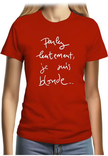 25,00€Prix unitaire /IndisponibleT-Shirt Femme Parlez Lentement Je Suis Blonde