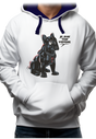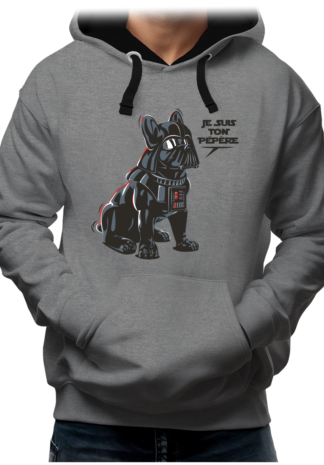 On dirait un chien tout droit sorti d’une parodie ciné . Et bien non ! Qu’est-ce que vous croyez vous ? Aucune parodie là dedans, derrière son armure noire, un petit cœur bat ! Quand il a fini ses 8 ou 10 heures de boulot, il rentre chez lui, il met ses pantoufles, son jogging, un petit tee-shirt ou un p’tit sweat avomarks molletonné lavé avec cajoline pour qu’il soit plus doux – évidemment qu’il a des fringues plus cool, vous croyez quoi vous, qu’il garde ses fringues de bureau à la maison et bin non, le gars, il se met à la cool – et il joue avec son pépère qu’est tout content de le voir parce qu’il va avoir ses croquettes de l’espace , ça dépend de l’humeur du moment.
