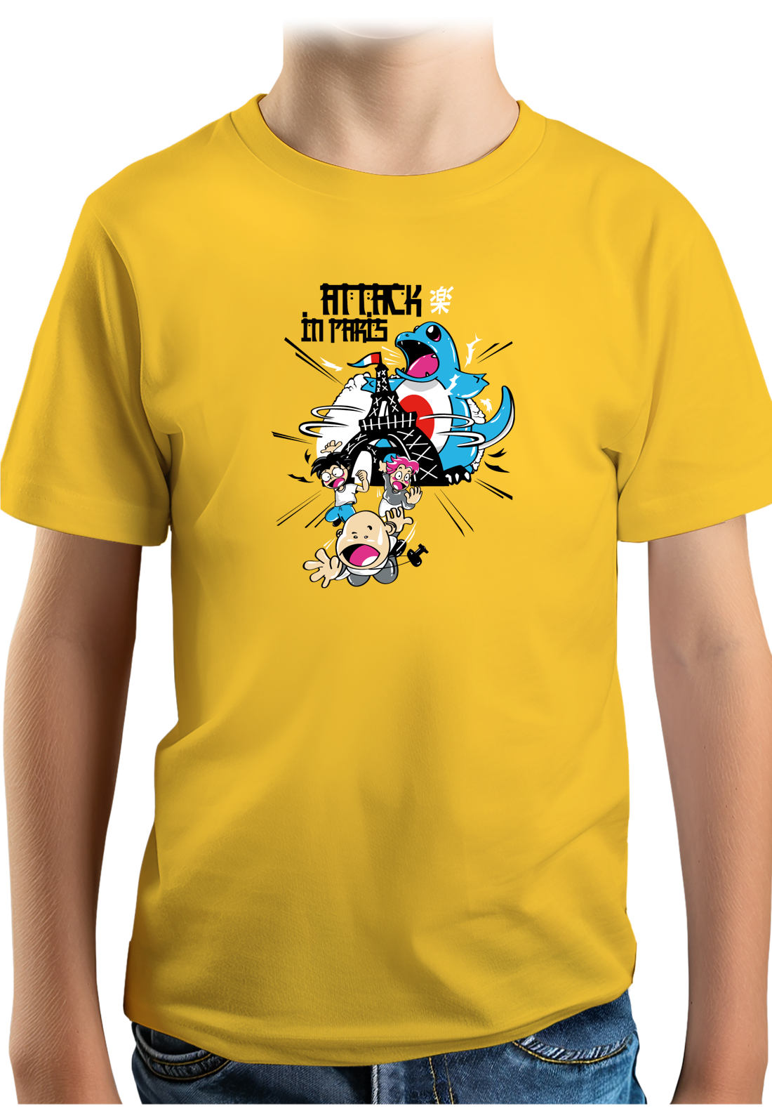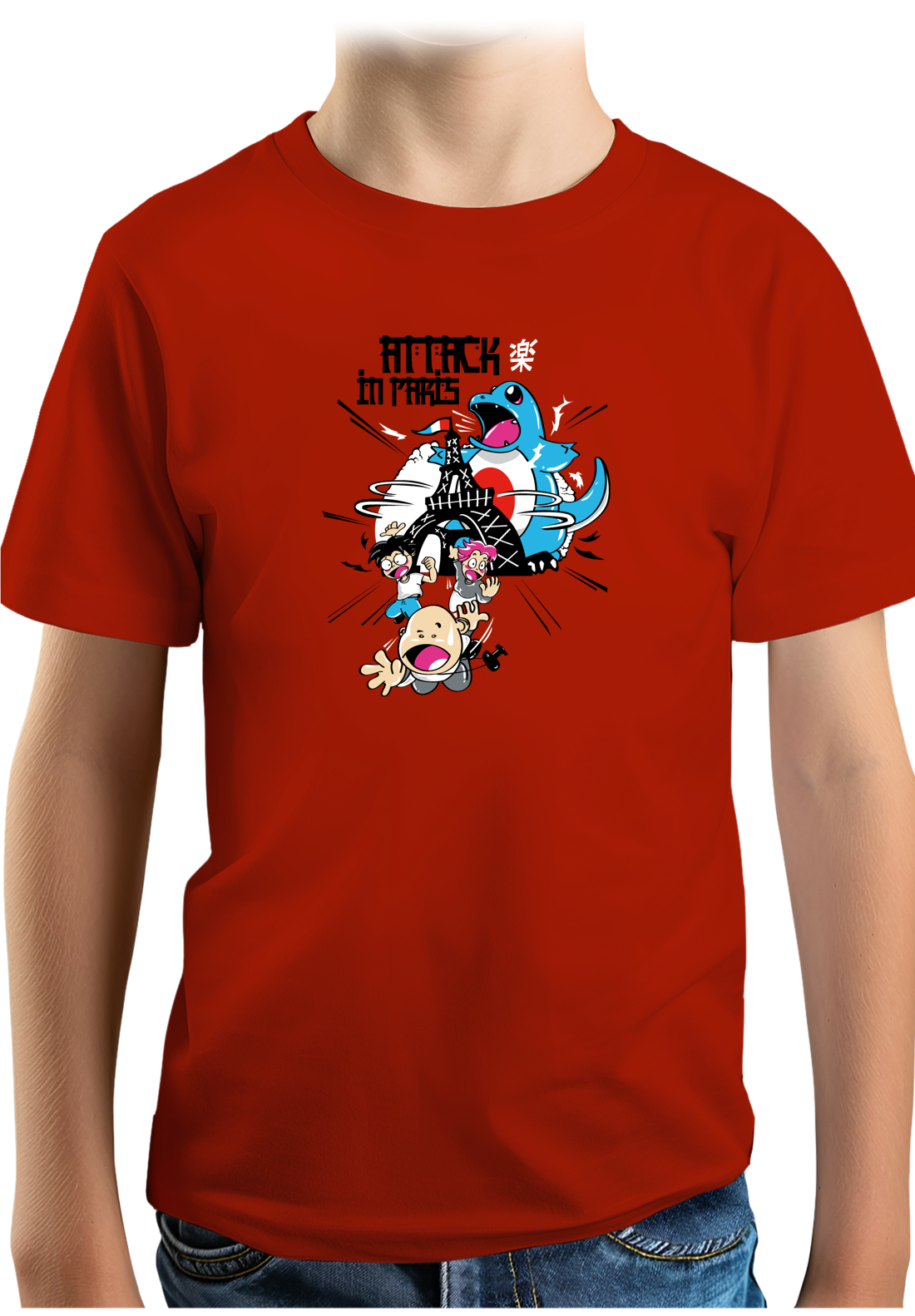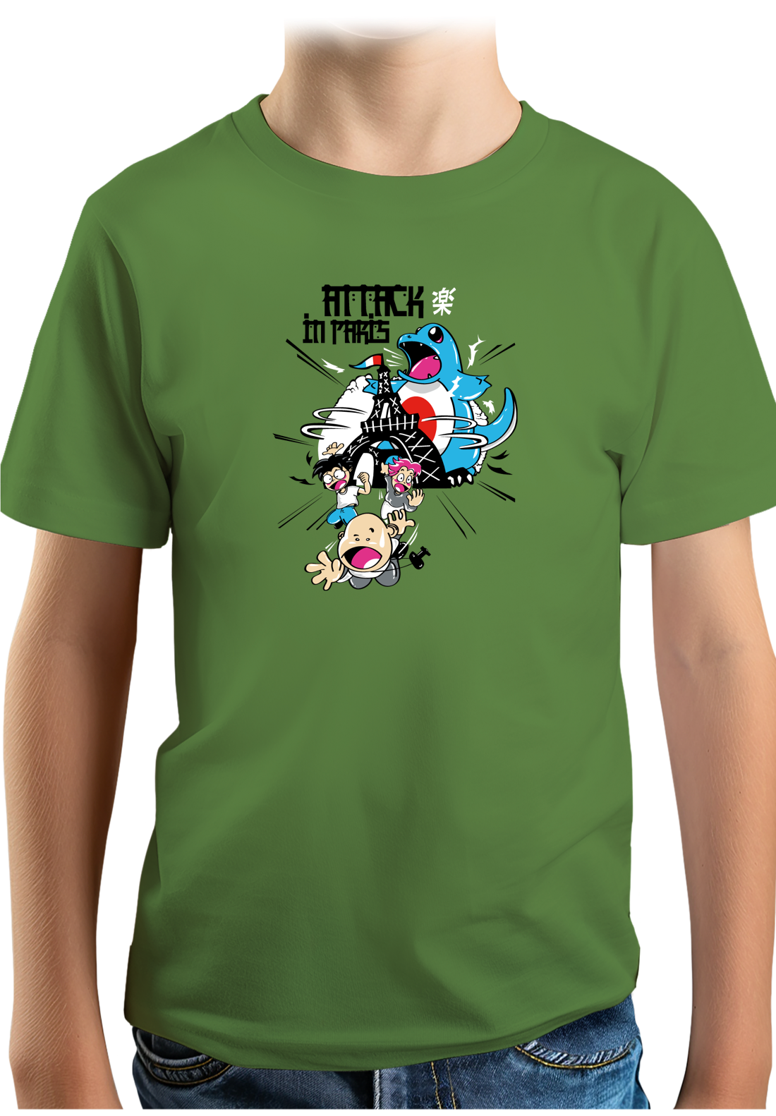 Un style manga pour ce t shirt personnalisé geek, une attaque de dragon Japonais, qu'on verrait bien tout droit sorti d'un dessin animé du club Dorothée des années 80/90, qui prend la tour eiffel pour une glace. De quoi effrayer tous les touristes de passage ! Un des t shirst originaux proposés par Mega-Lek qui a posté de nombreux visuels dans les concours organisés par Avomarks.