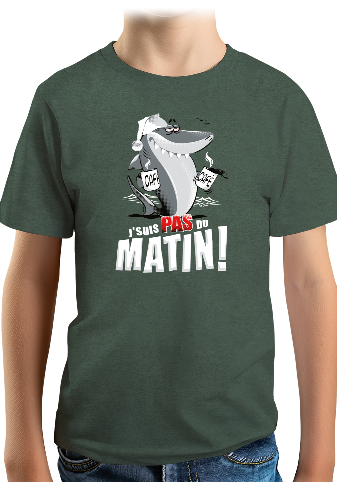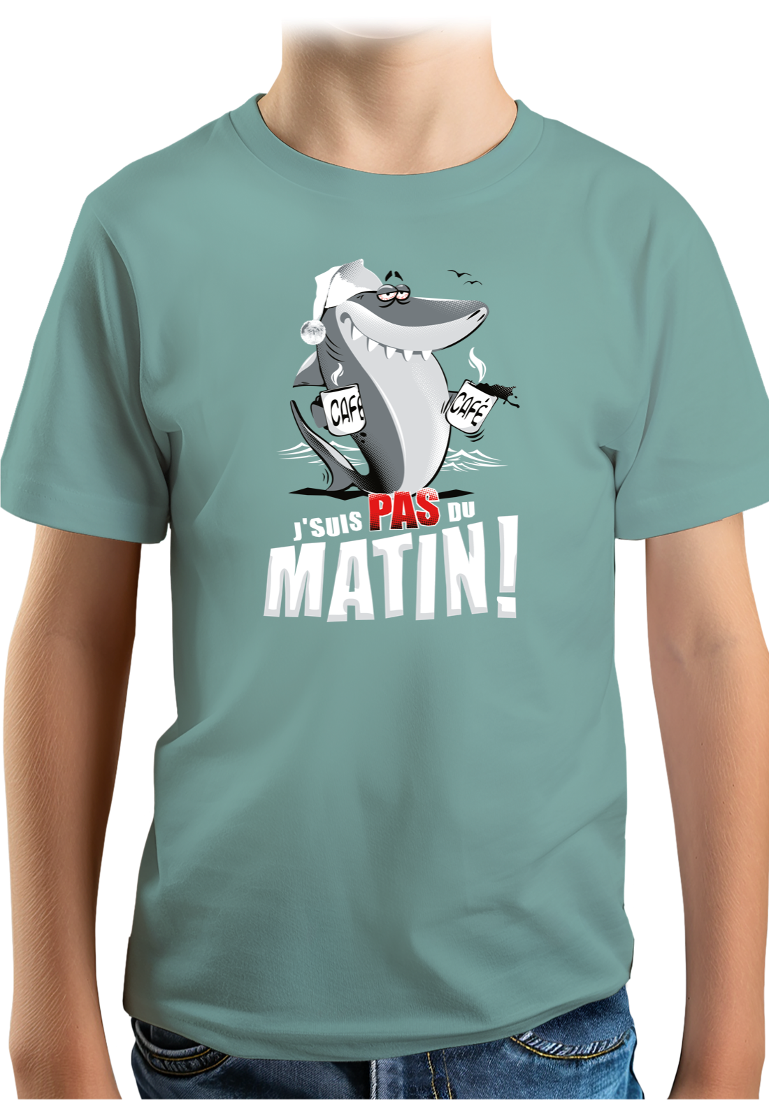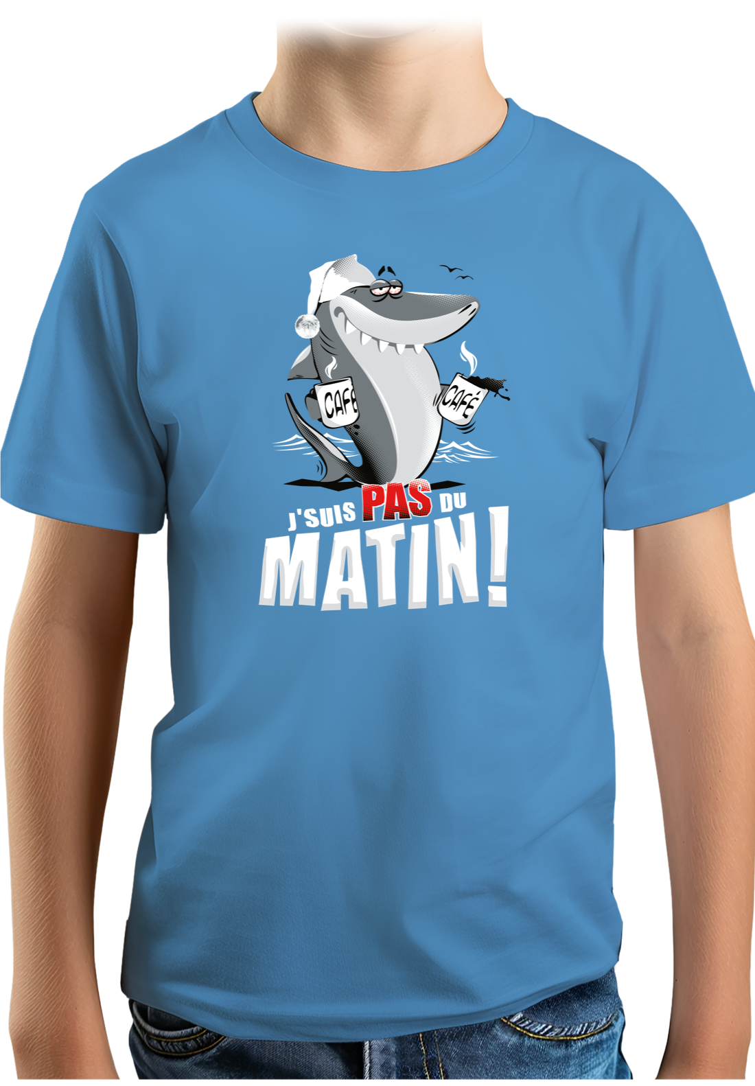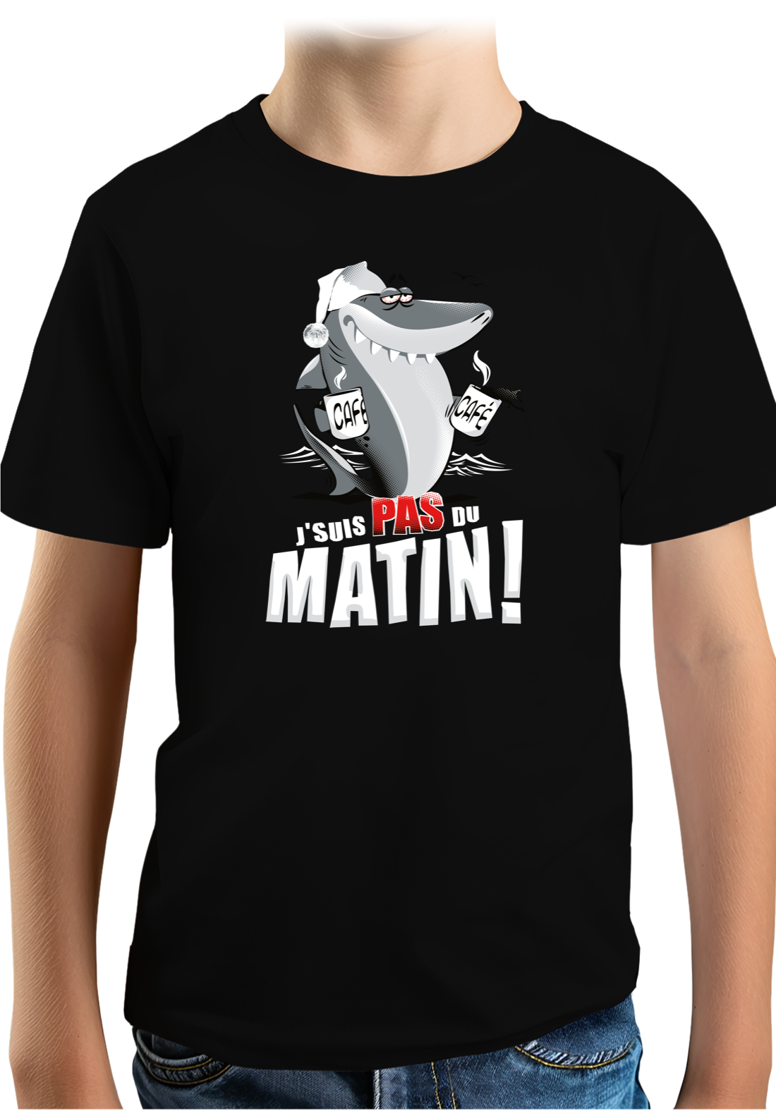 T-Shirt Garçon Requin je suis pas du matin